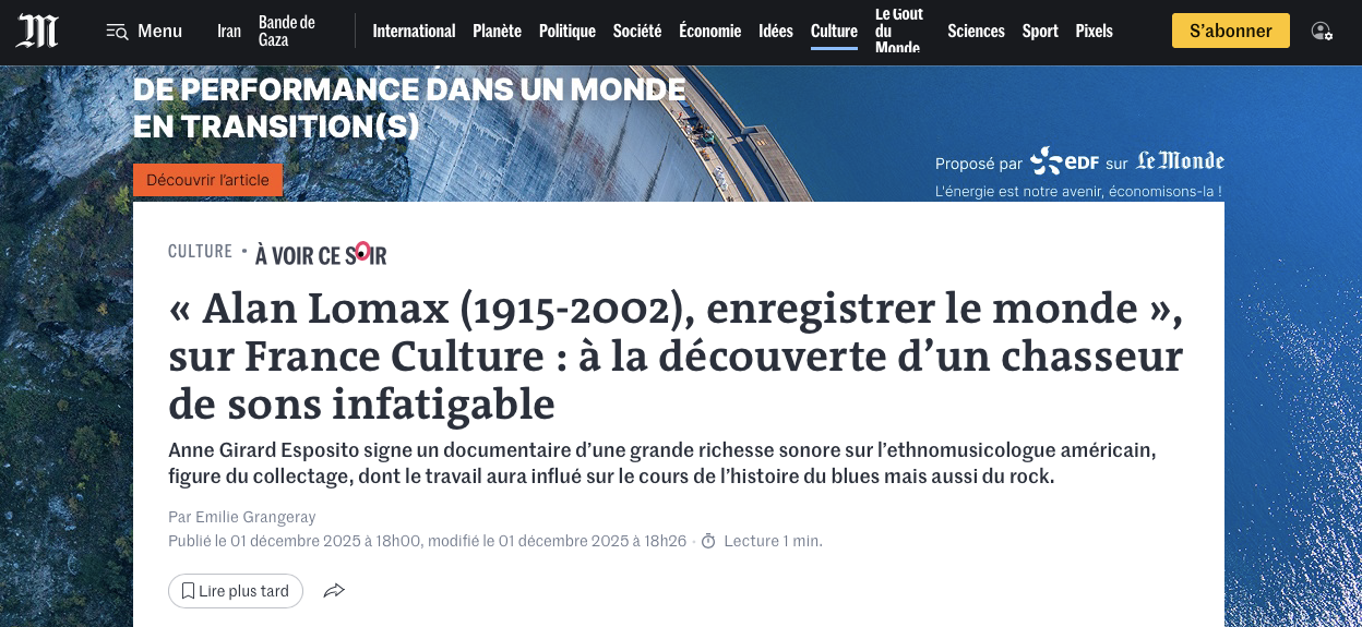 2 février 2026 09:08Documentaire Lomax dans Le Monde